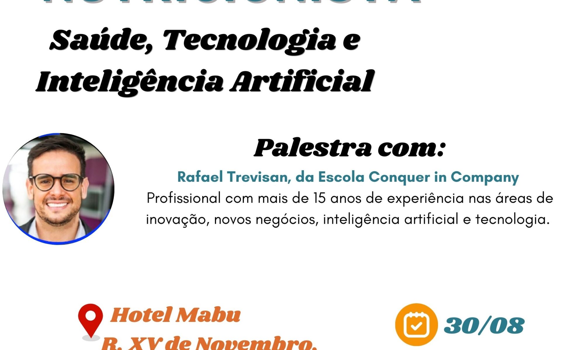 Um dos destaques do evento foi a palestra “Saúde, Tecnologia e Inteligência Artificial”, ministrada por Rafael Trevisan, profissional com mais de 15 anos de experiência nas áreas de inovação, novos negócios, inteligência artificial e tecnologia, que atua na Escola Conquer in Company. A palestra trouxe insights valiosos sobre como a tecnologia pode transformar a área da saúde e os desafios que isso traz para os nutricionistas na era contemporânea.
